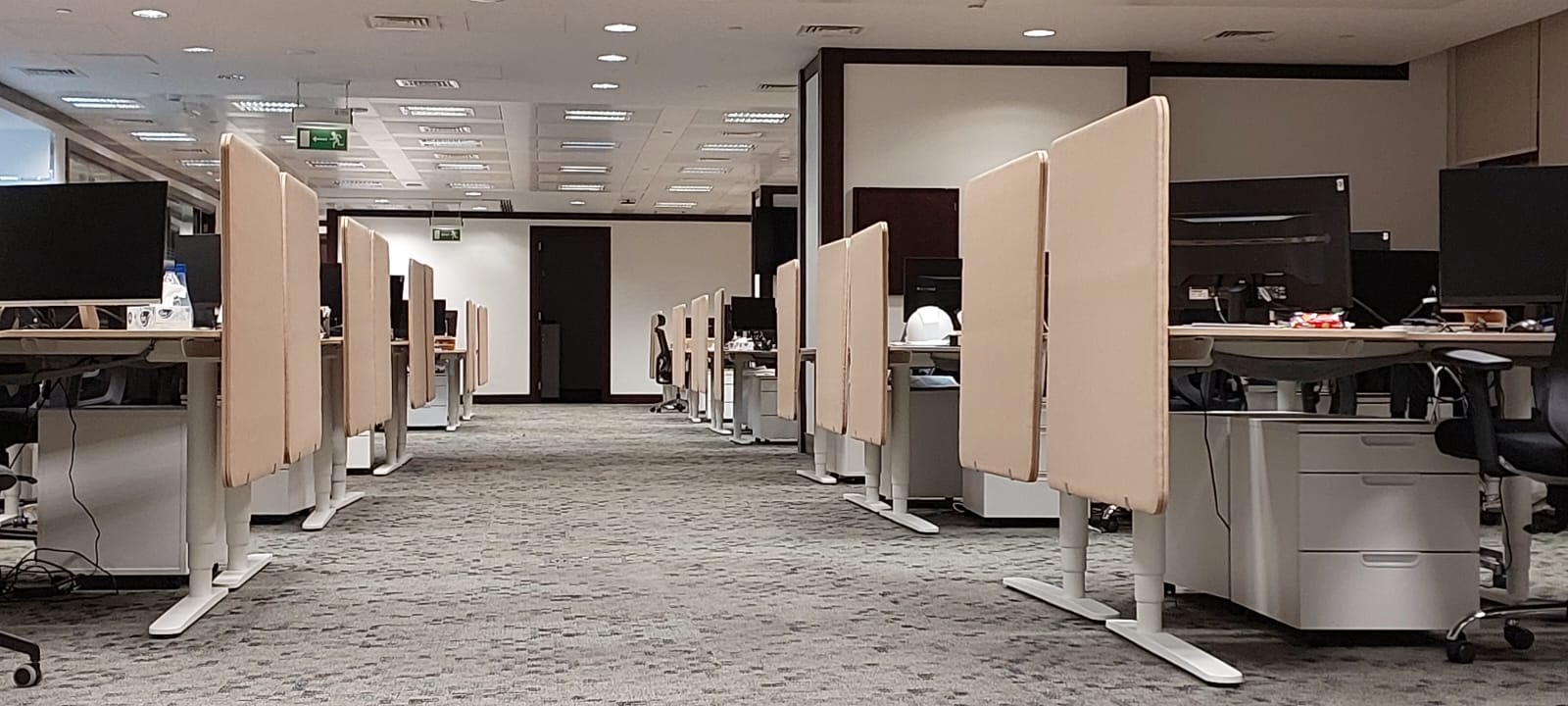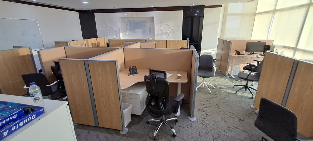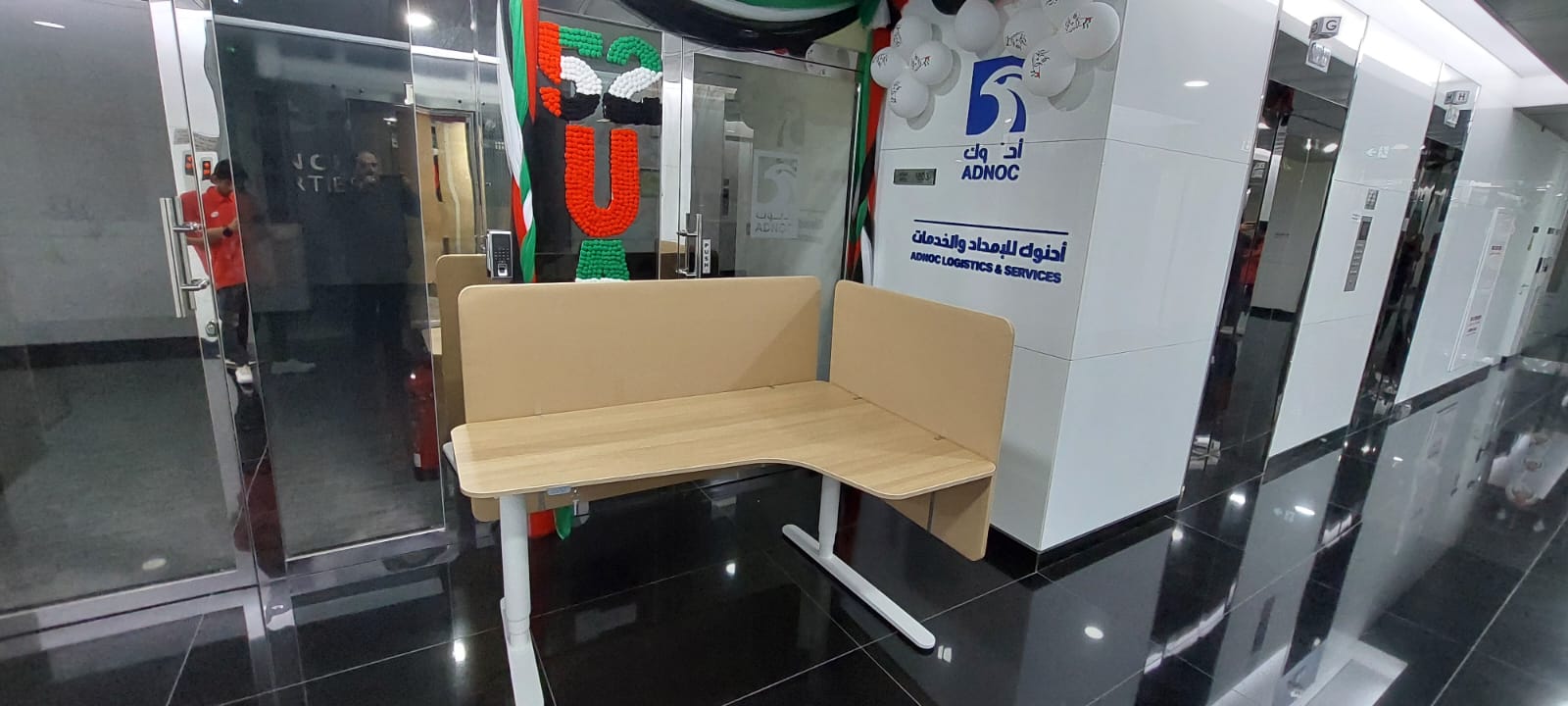 In 2024, we delivered customized office partitions for the ADNOC office, designed to enhance workspace privacy and functionality. The partitions were crafted using high-quality MDF MR (Moisture Resistant) panels combined with sound-absorbing foam for improved acoustic performance. Each unit was tailored to fit seamlessly between desks, maintaining a clean and professional look while supporting a focused and efficient working environment.