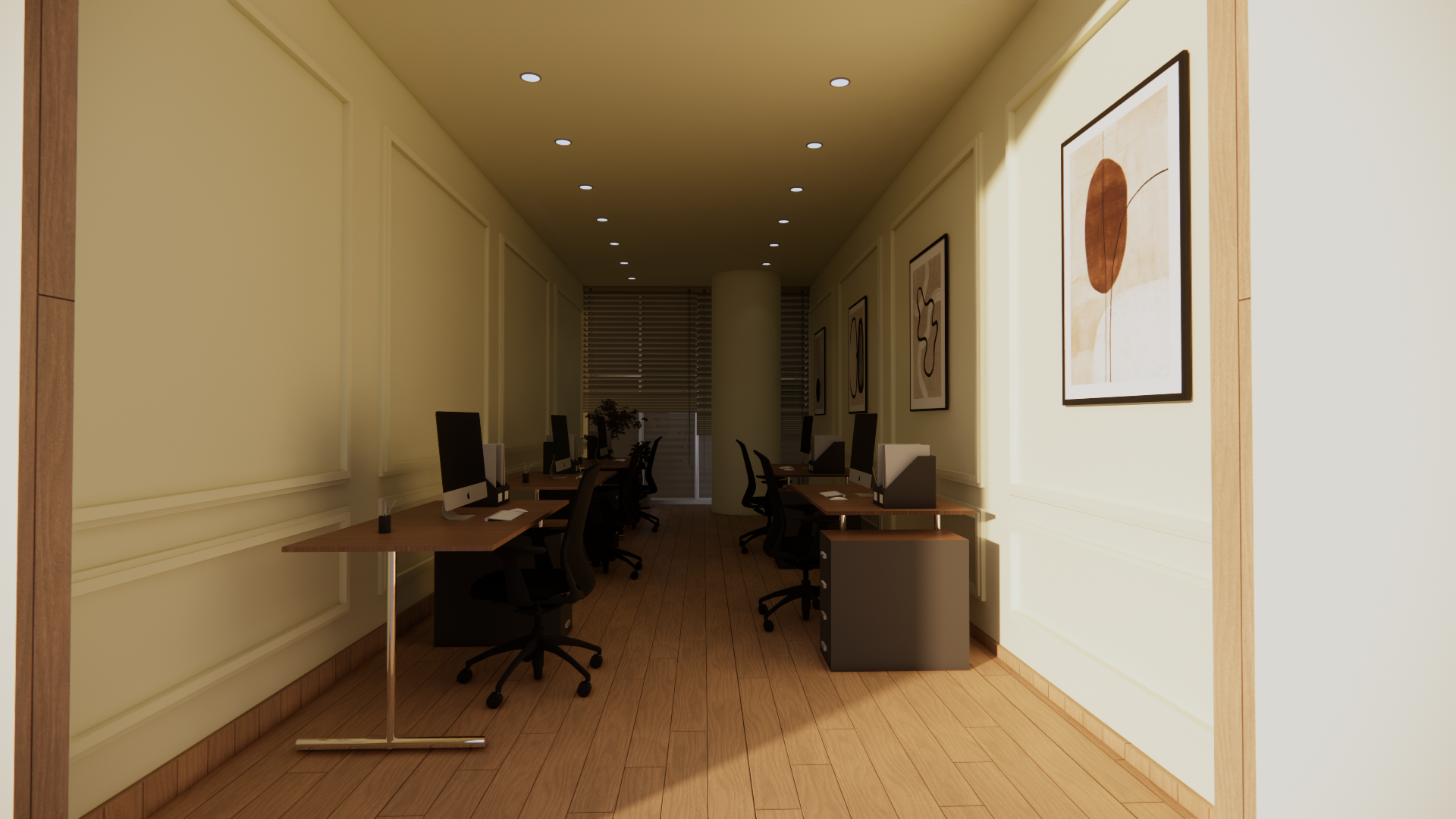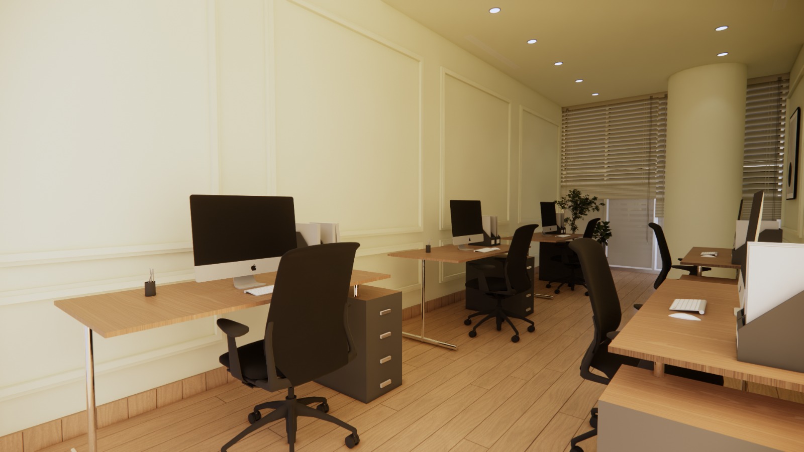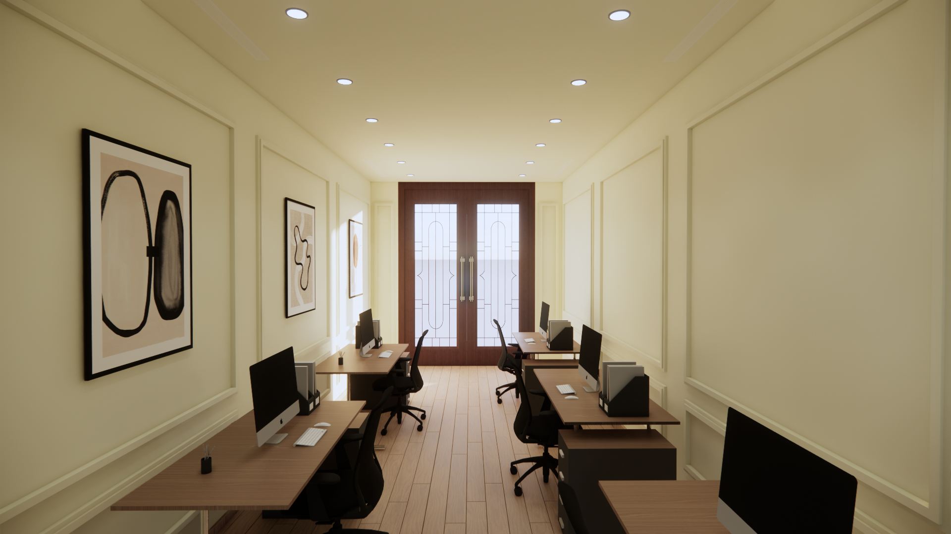 office renovation project on Reem Island involved a complete transformation, blending modern design elements with functional workspaces. The design focused on creating an open and collaborative environment while incorporating privacy areas to enhance productivity. High-quality materials like sleek wooden panels, polished marble, and contemporary finishes were used to elevate the overall aesthetic. We ensured that the space was not only visually appealing but also practical, with efficient storage solutions and ergonomic workstations. This renovation aims to foster a dynamic and comfortable workspace that meets the evolving needs of the team while showcasing a sophisticated and stylish atmosphere.”